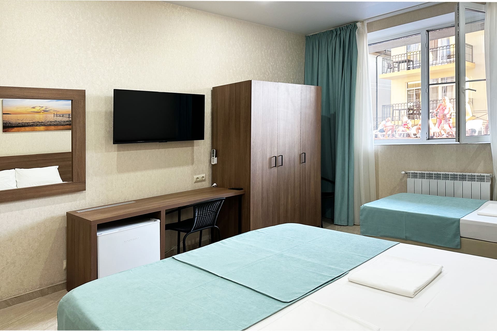 Абсолютно новый отель! Изумительно чистые,просторные номера, новая мебель,техника и принадлежности в ванной комнате. Приветливый и отзывчивый персонал и самое главное-наличие бассейна.